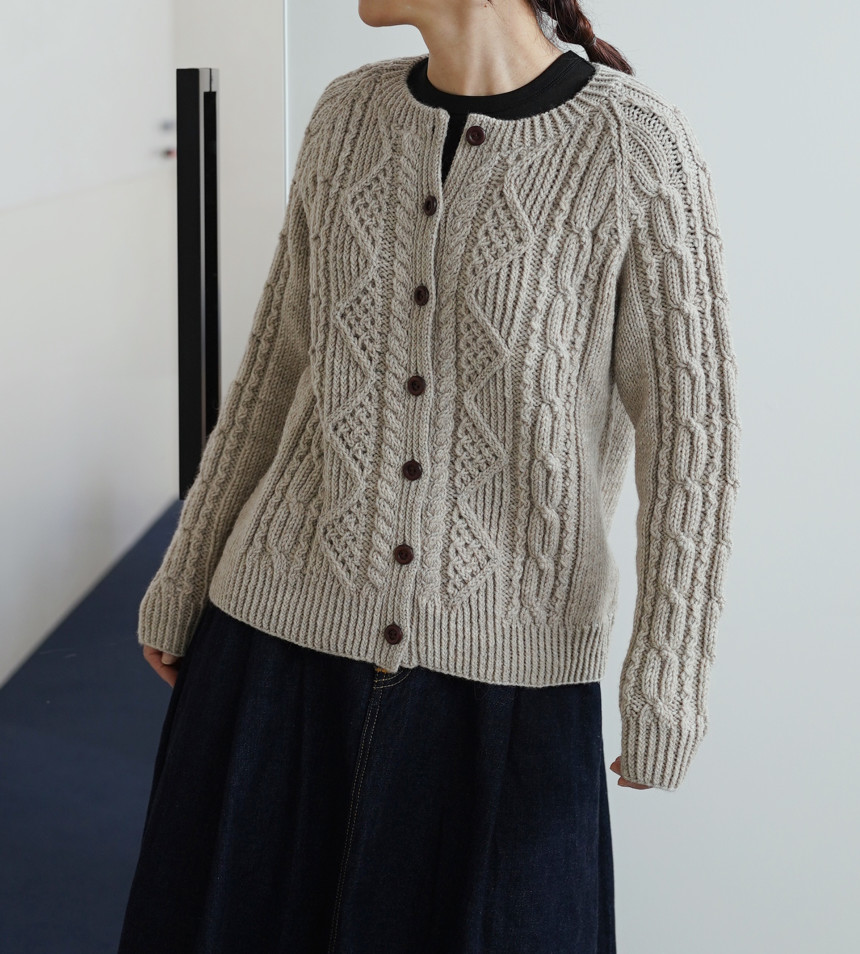 [DARUMA Knit Kit] 무늬뜨기 7부 소매 카디건 키트