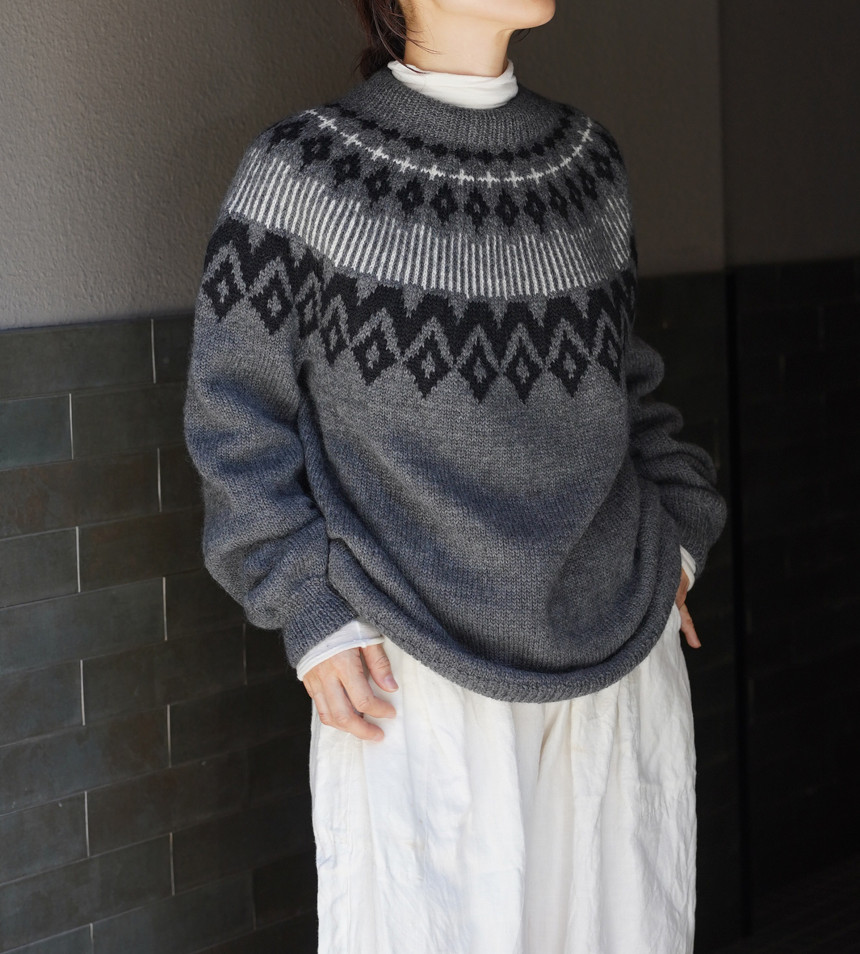 [DARUMA yarn kit] / 레이디얼 라인 & 다이아 배색 스웨터 실키트 L size