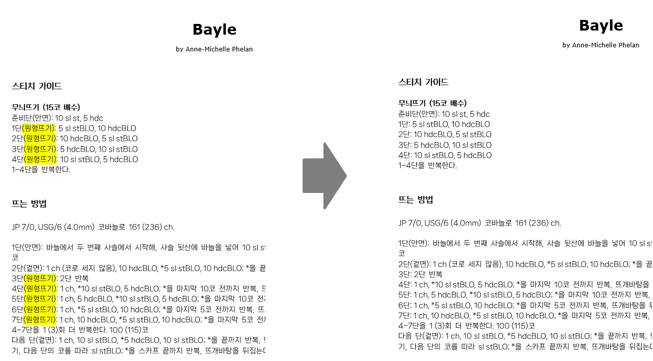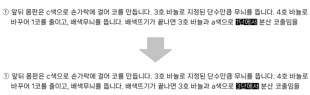 뜨개 키트에 들어있는 한국어 도안과 한국어 서적에 수정사항이 발생하면 이 페이지에 게재합니다.