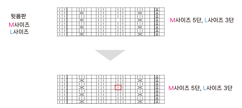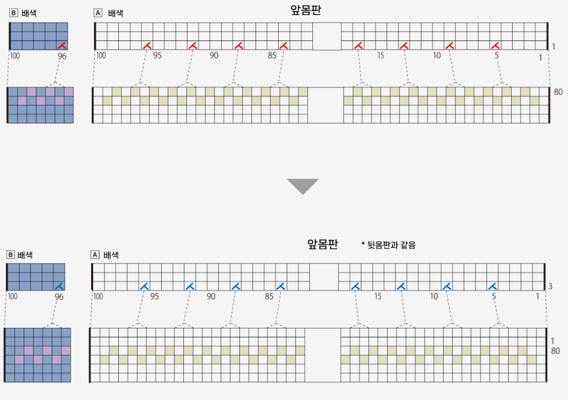 2페이지 뒷몸판 80단 무늬는 앞몸판 80단과 동일
