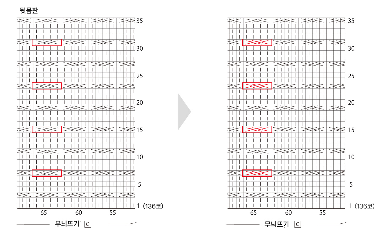 67-68페이지 패치워크 모티브 스웨터 뒷몸판 무늬뜨기C 기호도안